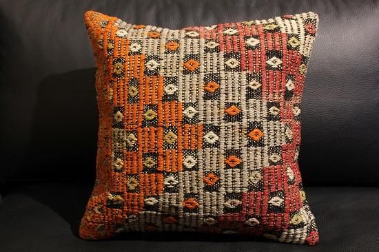 何十年も前に織られたオールドキリムの状態の良い部分をカットしてキリムのクッションカバーにしました。何回も洗い、日に当ててこそ出てくる色合い風合いに趣きを感じます。ソファーにいくつか並べてお洒落にディスプレイしてみてはいかがでしょう。