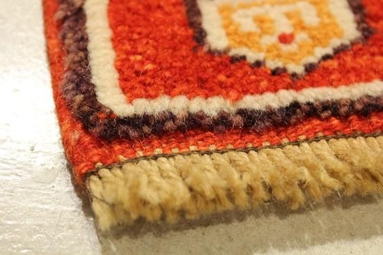 【お手入】 普段のお手入れは掃除機をかけるだけで十分です。また、天気の良い場所に干したり、敷き場所や方向など定期的に変えたりする事も長持ちの秘訣です。汚れが気になったら水洗いもできます。その際は、お湯を使わず水で洗って下さい。夏に屋外で洗う場合、ホースに残っている水は熱くなっていますので、水の温度になってから洗って下さい。ご自分で洗うのが大変だという方には、専門店でのクリーニングをお勧めします。当店でも承りますのでご相談ください。また、長期間使用しないまま保管される場合は、汚れをとり、湿気のない風通しの良い場所に保管して下さい。手織りの絨毯はお手入れ次第で一生あるいは次の世代まで受け継いでいただけます。