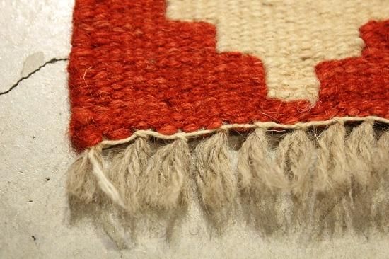 【お手入】 普段のお手入れは掃除機をかけるだけで十分です。また、天気の良い場所に干したり、敷き場所や方向など定期的に変えたりする事も長持ちの秘訣です。汚れが気になったら水洗いもできます。その際は、お湯を使わず水で洗って下さい。夏に屋外で洗う場合、ホースに残っている水は熱くなっていますので、水の温度になってから洗って下さい。ご自分で洗うのが大変だという方には、専門店でのクリーニングをお勧めします。当店でも承りますのでご相談ください。また、長期間使用しないまま保管される場合は、汚れをとり、湿気のない風通しの良い場所に保管して下さい。手織りの絨毯、キリムはお手入れ次第で一生あるいは次の世代まで受け継いでいただけます。