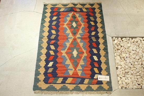 イランカシュガイ族が草木染・手織りで織り上げる平織のキリムです。遊牧民にとってキリムは穀物袋やラクダの背中に乗せる袋など生活用具を作る生地としての役割があり、家族の幸せを願うデザインが施されています。