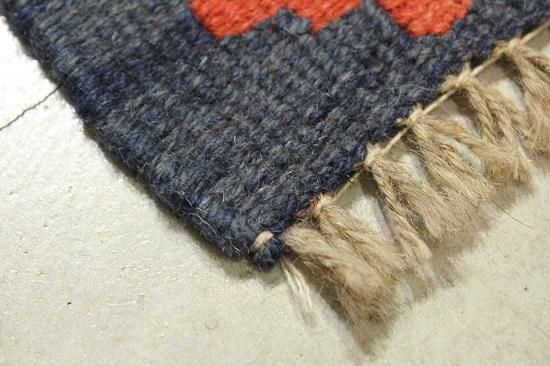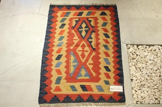 イランカシュガイ族が草木染・手織りで織り上げる平織のキリムです。遊牧民にとってキリムは穀物袋やラクダの背中に乗せる袋など生活用具を作る生地としての役割があり、家族の幸せを願うデザインが施されています。