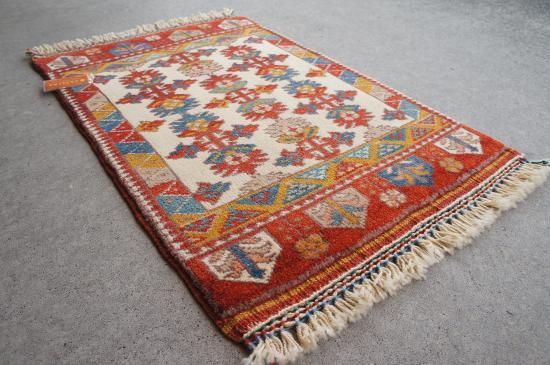 【お手入】 普段のお手入れは掃除機をかけるだけで十分です。また、天気の良い場所に干したり、敷き場所や方向など定期的に変えたりする事も長持ちの秘訣です。汚れが気になったら水洗いもできます。その際は、お湯を使わず水で洗って下さい。夏に屋外で洗う場合、ホースに残っている水は熱くなっていますので、水の温度になってから洗って下さい。ご自分で洗うのが大変だという方には、専門店でのクリーニングをお勧めします。当店でも承りますのでご相談ください。また、長期間使用しないまま保管される場合は、汚れをとり、湿気のない風通しの良い場所に保管して下さい。手織りの絨毯はお手入れ次第で一生あるいは次の世代まで受け継いでいただけます。