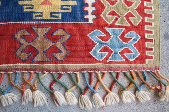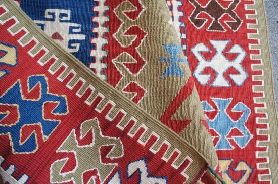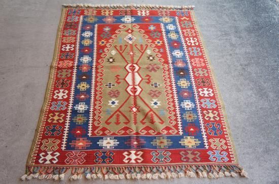 【お手入】 普段のお手入れは掃除機をかけるだけで十分です。また、天気の良い場所に干したり、敷き場所や方向など定期的に変えたりする事も長持ちの秘訣です。汚れが気になったら水洗いもできます。その際は、お湯を使わず水で洗って下さい。夏に屋外で洗う場合、ホースに残っている水は熱くなっていますので、水の温度になってから洗って下さい。ご自分で洗うのが大変だという方には、専門店でのクリーニングをお勧めします。当店でも承りますのでご相談ください。また、長期間使用しないまま保管される場合は、汚れをとり、湿気のない風通しの良い場所に保管して下さい。手織りの絨毯、キリムはお手入れ次第で一生あるいは次の世代まで受け継いでいただけます。