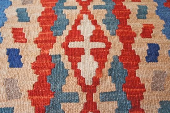 【お手入】 普段のお手入れは掃除機をかけるだけで十分です。また、天気の良い場所に干したり、敷き場所や方向など定期的に変えたりする事も長持ちの秘訣です。汚れが気になったら水洗いもできます。その際は、お湯を使わず水で洗って下さい。夏に屋外で洗う場合、ホースに残っている水は熱くなっていますので、水の温度になってから洗って下さい。ご自分で洗うのが大変だという方には、専門店でのクリーニングをお勧めします。当店でも承りますのでご相談ください。また、長期間使用しないまま保管される場合は、汚れをとり、湿気のない風通しの良い場所に保管して下さい。手織りの絨毯、キリムはお手入れ次第で一生あるいは次の世代まで受け継いでいただけます。