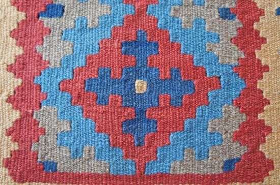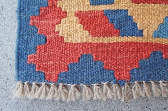 【お手入】 普段のお手入れは掃除機をかけるだけで十分です。また、天気の良い場所に干したり、敷き場所や方向など定期的に変えたりする事も長持ちの秘訣です。汚れが気になったら水洗いもできます。その際は、お湯を使わず水で洗って下さい。夏に屋外で洗う場合、ホースに残っている水は熱くなっていますので、水の温度になってから洗って下さい。ご自分で洗うのが大変だという方には、専門店でのクリーニングをお勧めします。当店でも承りますのでご相談ください。また、長期間使用しないまま保管される場合は、汚れをとり、湿気のない風通しの良い場所に保管して下さい。手織りの絨毯、キリムはお手入れ次第で一生あるいは次の世代まで受け継いでいただけます。