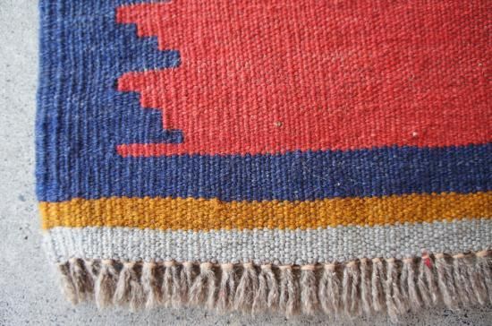 【お手入】 普段のお手入れは掃除機をかけるだけで十分です。また、天気の良い場所に干したり、敷き場所や方向など定期的に変えたりする事も長持ちの秘訣です。汚れが気になったら水洗いもできます。その際は、お湯を使わず水で洗って下さい。夏に屋外で洗う場合、ホースに残っている水は熱くなっていますので、水の温度になってから洗って下さい。ご自分で洗うのが大変だという方には、専門店でのクリーニングをお勧めします。当店でも承りますのでご相談ください。また、長期間使用しないまま保管される場合は、汚れをとり、湿気のない風通しの良い場所に保管して下さい。手織りの絨毯、キリムはお手入れ次第で一生あるいは次の世代まで受け継いでいただけます。