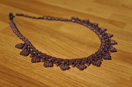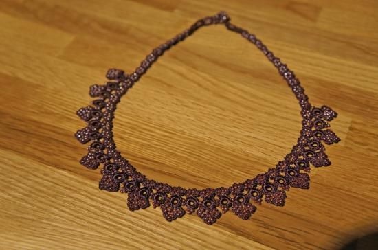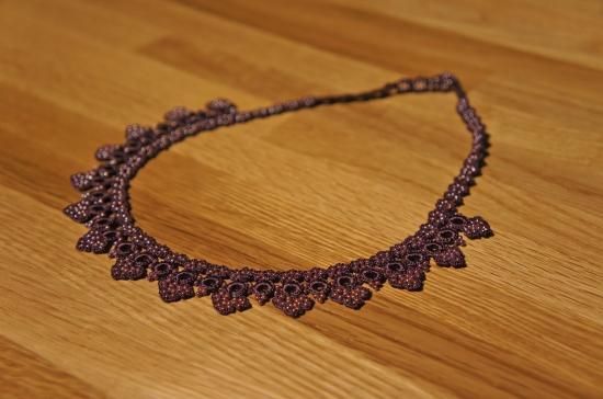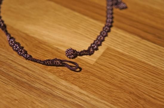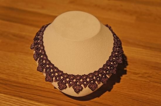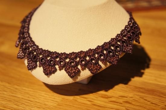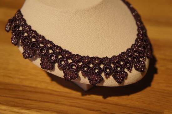 ◇特 徴◇ 気品のある紫色の糸とビーズで編んだ、上品な雰囲気のネックレス。フォーマルなファッションにも使えそうな作品です。糸とビーズでできているから見た目の華やかさからは想像できないほど軽く、金属を使わないので金属アレルギーという方にもおすすめです。お洒落上手な方へのプレゼントにも喜ばれそうですね。