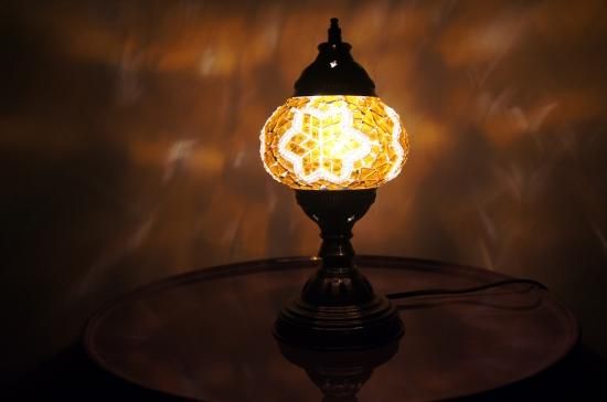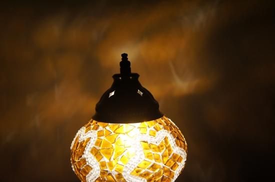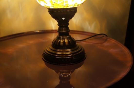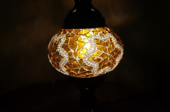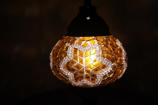 カットしたガラスやビーズを使いいろいろな模様を作っていくトルコのモザイクランプ。ガラス球にビーズでくるくると渦巻き模様を作ったり、ビーズやカットガラスを散りばめて貼り付けています。光を放つことにより、お部屋の壁や天井に模様を映し出し、エキゾチックな空間にしてくれます。使用している電球は海外仕様になりますが日本でも購入可能です(当店でも販売はしております。)