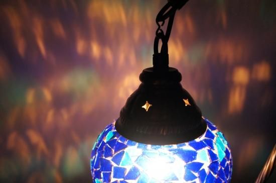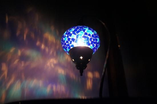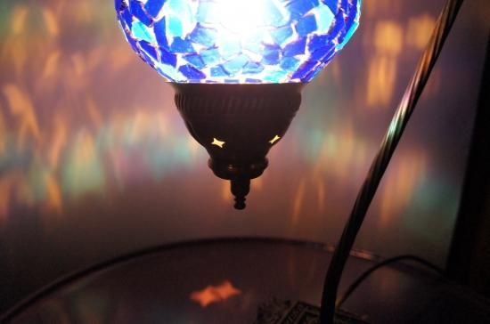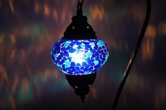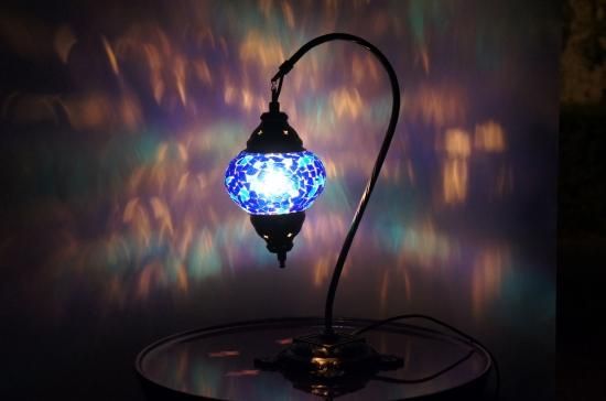 カットしたガラスやビーズを使いいろいろな模様を作っていくトルコのモザイクランプ。ガラス球にビーズでくるくると渦巻き模様を作ったり、ビーズやカットガラスを散りばめて貼り付けています。光を放つことにより、お部屋の壁や天井に模様を映し出し、エキゾチックな空間にしてくれます。使用している電球は海外仕様になりますが日本でも購入可能です(当店でも販売はしております。)