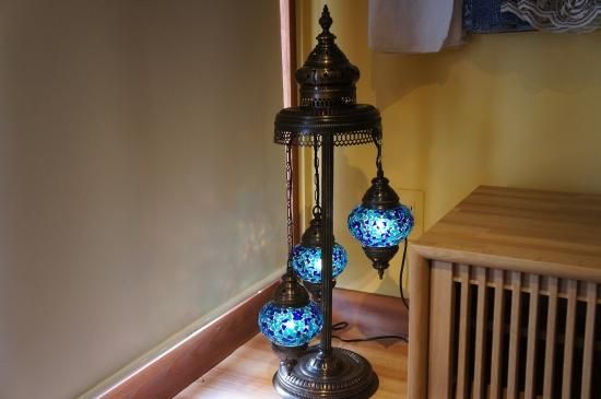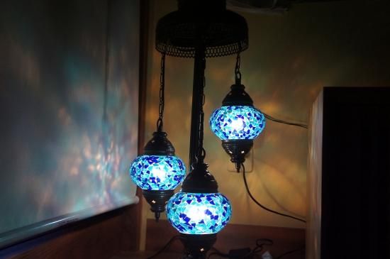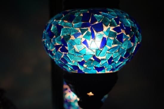 カットしたガラスやビーズを使いいろいろな模様を作っていくトルコのモザイクランプ。ガラス球にビーズでくるくると渦巻き模様を作ったり、ビーズやカットガラスを散りばめて貼り付けています。光を放つことにより、お部屋の壁や天井に模様を映し出し、エキゾチックな空間にしてくれます。使用している電球は海外仕様になりますが日本でも購入可能です(当店でも販売はしております。)