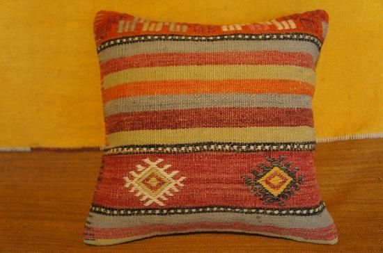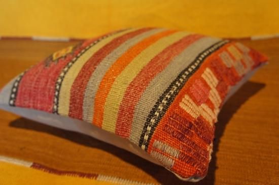 何十年も前に織られたオールドキリムの状態の良い部分をカットしてキリムのクッションカバーにしました。何回も洗い、日に当ててこそ出てくる色合い風合いに趣きを感じます。ソファーにいくつか並べてお洒落にディスプレイしてみてはいかがでしょう。
