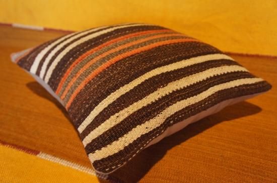 何十年も前に織られたオールドキリムの状態の良い部分をカットしてキリムのクッションカバーにしました。何回も洗い、日に当ててこそ出てくる色合い風合いに趣きを感じます。ソファーにいくつか並べてお洒落にディスプレイしてみてはいかがでしょう。