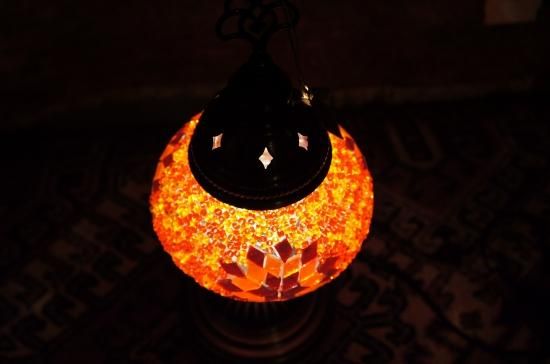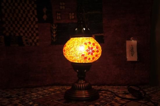 カットしたガラスやビーズを使いいろいろな模様を作っていくトルコのモザイクランプ。ガラス球にビーズでくるくると渦巻き模様を作ったり、ビーズやカットガラスを散りばめて貼り付けています。光を放つことにより、お部屋の壁や天井に模様を映し出し、エキゾチックな空間にしてくれます。使用している電球は海外仕様になりますが日本でも購入可能です(当店でも販売はしております。)