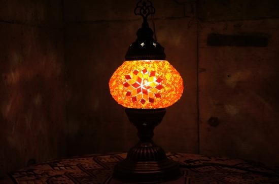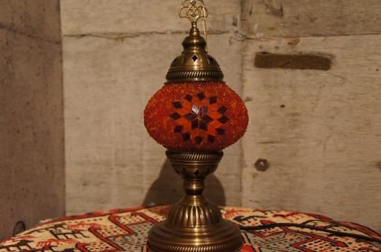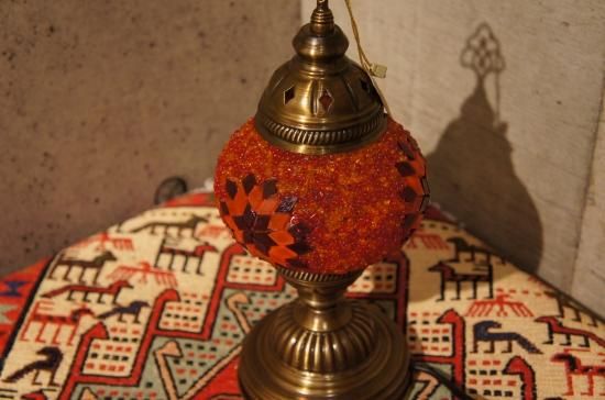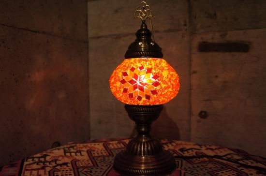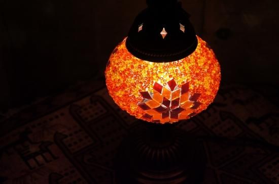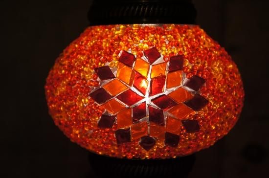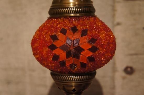 カットしたガラスやビーズを使いいろいろな模様を作っていくトルコのモザイクランプ。ガラス球にビーズでくるくると渦巻き模様を作ったり、ビーズやカットガラスを散りばめて貼り付けています。光を放つことにより、お部屋の壁や天井に模様を映し出し、エキゾチックな空間にしてくれます。使用している電球は海外仕様になりますが日本でも購入可能です(当店でも販売はしております。)