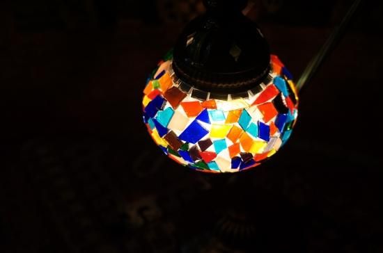 カットしたガラスやビーズを使いいろいろな模様を作っていくトルコのモザイクランプ。ガラス球にビーズでくるくると渦巻き模様を作ったり、ビーズやカットガラスを散りばめて貼り付けています。光を放つことにより、お部屋の壁や天井に模様を映し出し、エキゾチックな空間にしてくれます。使用している電球は海外仕様になりますが日本でも購入可能です(当店でも販売はしております。)