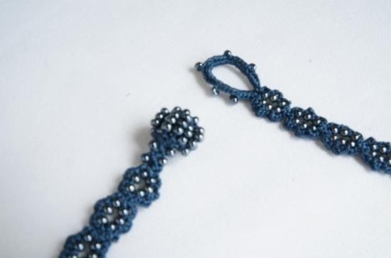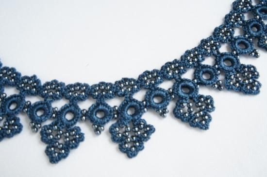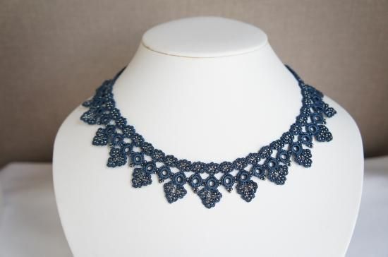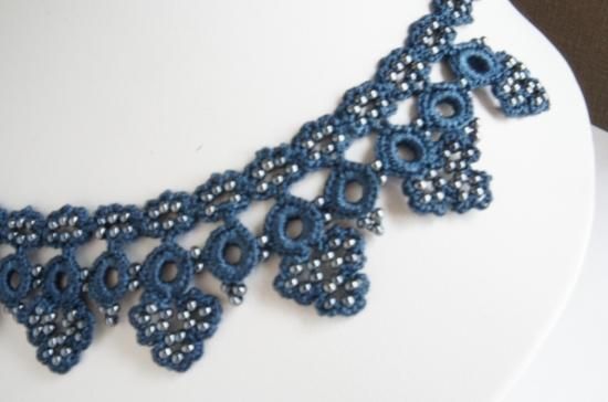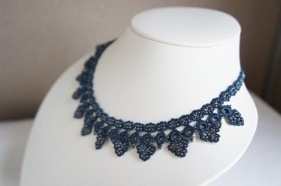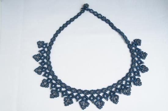 ◇特 徴◇ ブルーグレーの糸とビーズの組み合わせで編んだネックレス。糸とビーズでできているから見た目の華やかさからは想像できないほど軽く、金属を使わないので金属アレルギーという方にもおすすめです。お洒落上手な方へのプレゼントにも喜ばれそうですね。