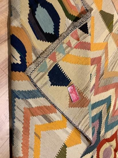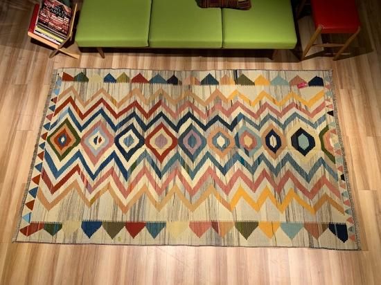 【お手入】 普段のお手入れは掃除機をかけるだけで十分です。天気の良い場所に干したり、敷き場所や方向など定期的に変えたりする事も長持ちの秘訣です。汚れが気になりクリーニングをお考えの場合には、専門店でのクリーニングをお勧めします。当店でも承りますのでご相談ください。また、長期間使用しないまま保管される場合は、汚れをとり、湿気のない風通しの良い場所に保管して下さい。手織りのキリムはお手入れ次第で一生あるいは次の世代まで受け継いでいただけます。