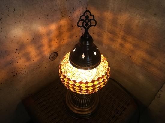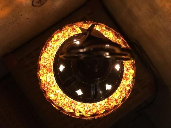 カットしたガラスやビーズを使いいろいろな模様を作っていくトルコのモザイクランプ。ガラス球に、ビーズやカットガラスを散りばめて貼り付けています。光を放つことにより、お部屋の壁や天井に模様を映し出し、エキゾチックな空間にしてくれます。使用している電球は海外仕様になりますが日本でも購入可能です(当店でも販売はしております。)