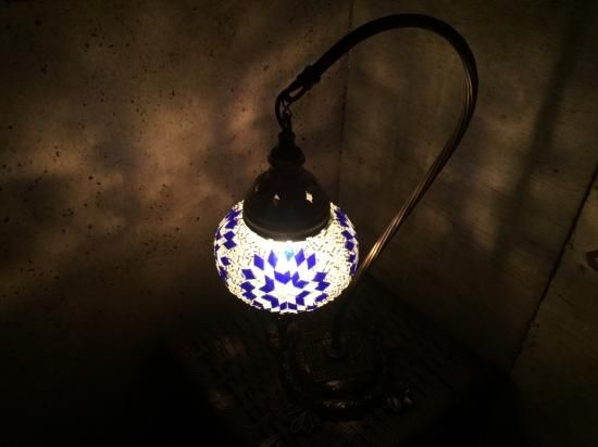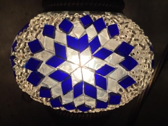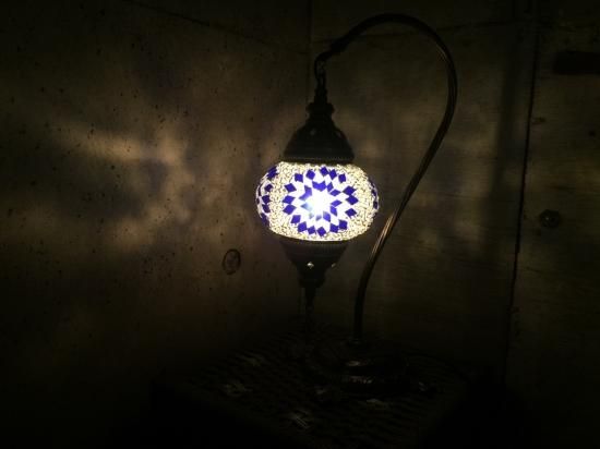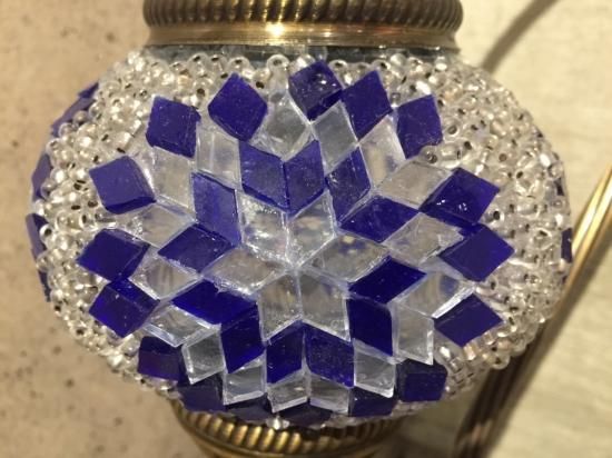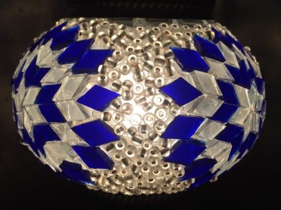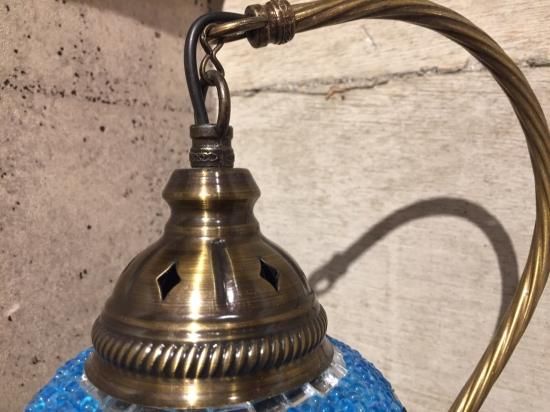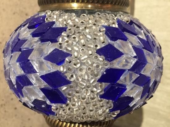 カットしたガラスやビーズを使いいろいろな模様を作っていくトルコのモザイクランプ。ガラス球にビーズでくるくると渦巻き模様を作ったり、ビーズやカットガラスを散りばめて貼り付けています。光を放つことにより、お部屋の壁や天井に模様を映し出し、エキゾチックな空間にしてくれます。使用している電球は海外仕様になりますが日本でも購入可能です(当店でも販売はしております。)