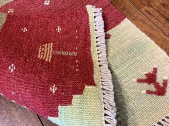 そんなキリムにギャッベで可愛らしいモチーフを織り込んているギャッべキリム。