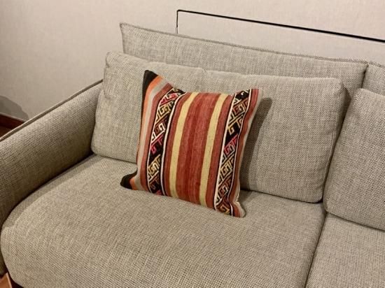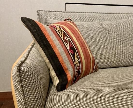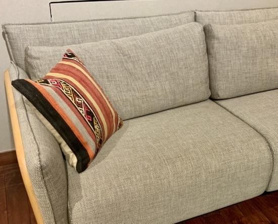 初めてキリムを手にされる方には、チクチクするという感触があるかもしれません。感じ方には個人差がありますが、それがキリムの風合いという事をご理解下さいませ。チクチク感が気になるという方には、使い方としまして頭や顔をつけるときには滑らかな肌触りの裏地(コットン)面を、インテリアとして楽しまれる時にはキリム面を出してご使用されることをご提案いたします。