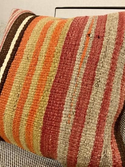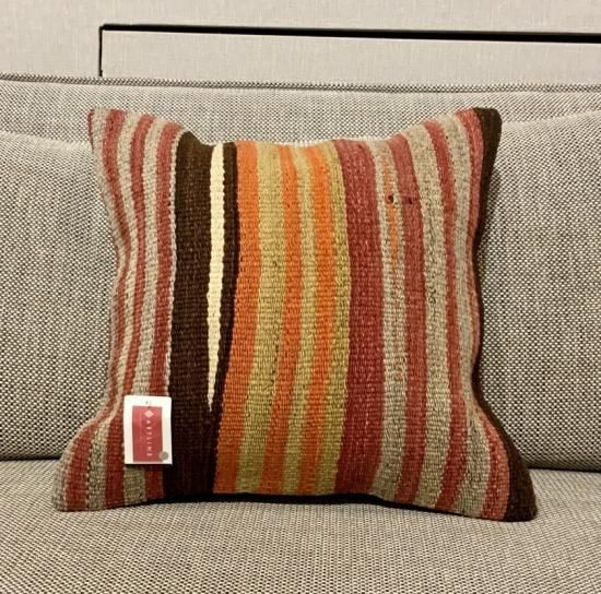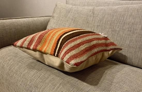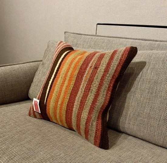 何十年も前に織られたオールドキリムの状態の良い部分をカットしてキリムのクッションカバーにしました。何回も洗い、日に当ててこそ出てくる色合い風合いに趣きを感じます。ソファーにいくつか並べてお洒落にディスプレイしてみてはいかがでしょう。