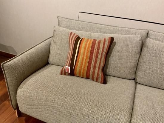 初めてキリムを手にされる方には、チクチクするという感触があるかもしれません。感じ方には個人差がありますが、それがキリムの風合いという事をご理解下さいませ。チクチク感が気になるという方には、使い方としまして頭や顔をつけるときには滑らかな肌触りの裏地(コットン)面を、インテリアとして楽しまれる時にはキリム面を出してご使用されることをご提案いたします。