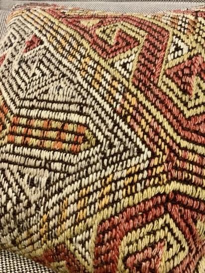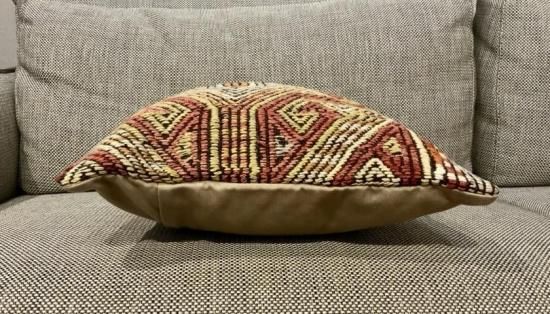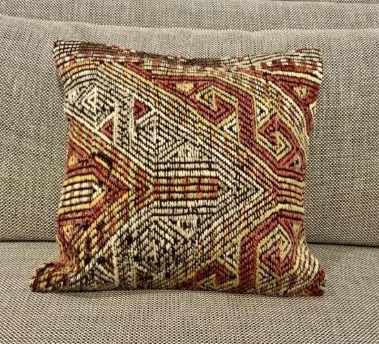 何十年も前に織られたオールドキリムの状態の良い部分をカットしてキリムのクッションカバーにしました。何回も洗い、日に当ててこそ出てくる色合い風合いに趣きを感じます。ソファーにいくつか並べてお洒落にディスプレイしてみてはいかがでしょう。