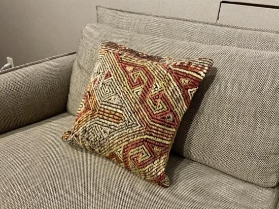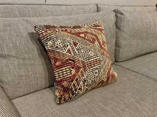 初めてキリムを手にされる方には、チクチクするという感触があるかもしれません。感じ方には個人差がありますが、それがキリムの風合いという事をご理解下さいませ。チクチク感が気になるという方には、使い方としまして頭や顔をつけるときには滑らかな肌触りの裏地(コットン)面を、インテリアとして楽しまれる時にはキリム面を出してご使用されることをご提案いたします。