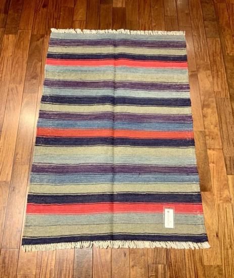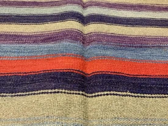 【お手入】 普段のお手入れは掃除機をかけるだけで十分です。また、天気の良い場所に干したり、敷き場所や方向など定期的に変えたりする事も長持ちの秘訣です。汚れが気になったら水洗いもできます。その際は、お湯を使わず水で洗って下さい。夏に屋外で洗う場合、ホースに残っている水は熱くなっていますので、水の温度になってから洗って下さい。ご自分で洗うのが大変だという方には、専門店でのクリーニングをお勧めします。当店でも承りますのでご相談ください。また、長期間使用しないまま保管される場合は、汚れをとり、湿気のない風通しの良い場所に保管して下さい。手織りの絨毯、キリムはお手入れ次第で一生あるいは次の世代まで受け継いでいただけます。