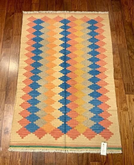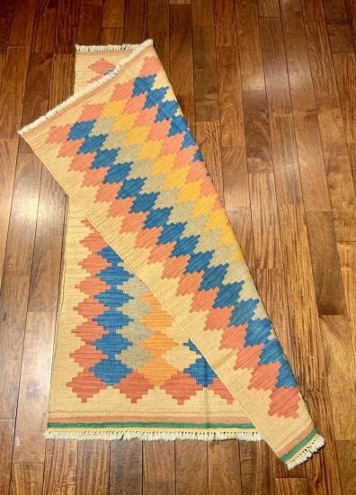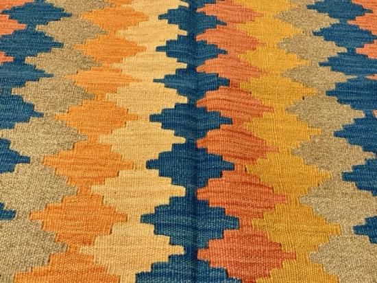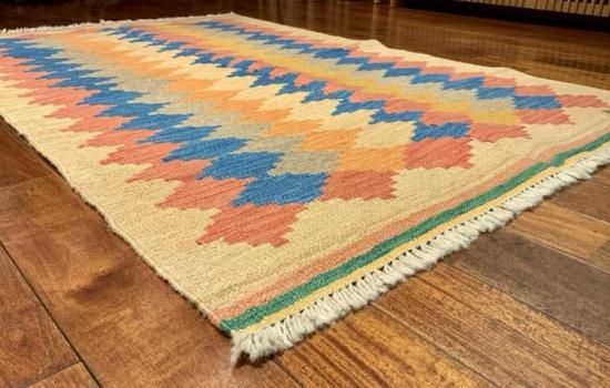 【お手入】 普段のお手入れは掃除機をかけるだけで十分です。また、天気の良い場所に干したり、敷き場所や方向など定期的に変えたりする事も長持ちの秘訣です。汚れが気になったら水洗いもできます。その際は、お湯を使わず水で洗って下さい。夏に屋外で洗う場合、ホースに残っている水は熱くなっていますので、水の温度になってから洗って下さい。ご自分で洗うのが大変だという方には、専門店でのクリーニングをお勧めします。当店でも承りますのでご相談ください。また、長期間使用しないまま保管される場合は、汚れをとり、湿気のない風通しの良い場所に保管して下さい。手織りの絨毯、キリムはお手入れ次第で一生あるいは次の世代まで受け継いでいただけます。