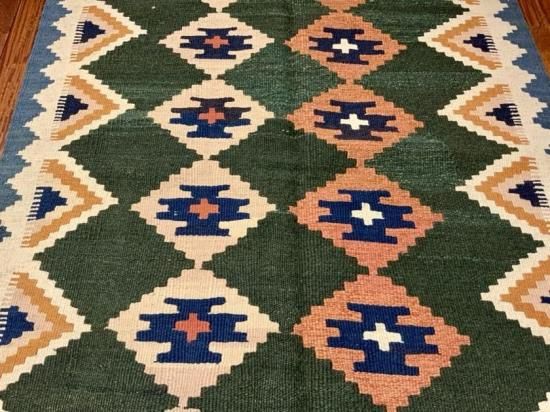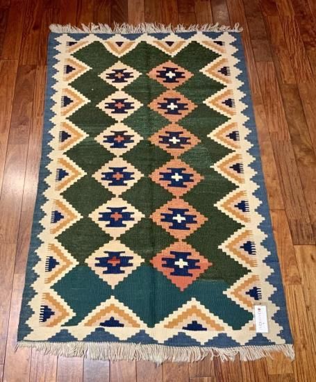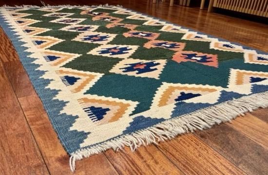 【お手入】 普段のお手入れは掃除機をかけるだけで十分です。また、天気の良い場所に干したり、敷き場所や方向など定期的に変えたりする事も長持ちの秘訣です。汚れが気になったら水洗いもできます。その際は、お湯を使わず水で洗って下さい。夏に屋外で洗う場合、ホースに残っている水は熱くなっていますので、水の温度になってから洗って下さい。ご自分で洗うのが大変だという方には、専門店でのクリーニングをお勧めします。当店でも承りますのでご相談ください。また、長期間使用しないまま保管される場合は、汚れをとり、湿気のない風通しの良い場所に保管して下さい。手織りの絨毯、キリムはお手入れ次第で一生あるいは次の世代まで受け継いでいただけます。