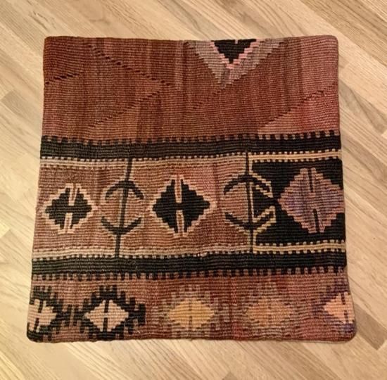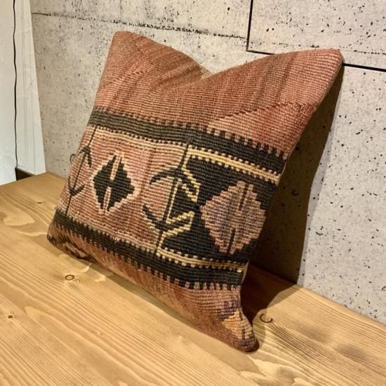 何十年も前に織られたオールドキリムの状態の良い部分をカットしてキリムのクッションカバーにしました。何回も洗い、日に当ててこそ出てくる色合い風合いに趣きを感じます。ソファーにいくつか並べてお洒落にディスプレイしてみてはいかがでしょう。